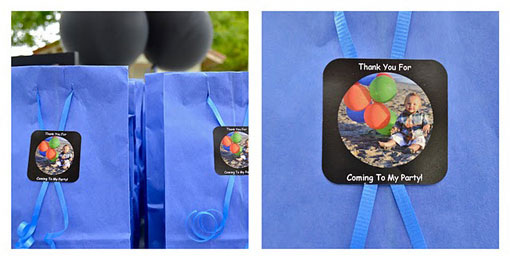 Keep an eye out early on and you can find some great things to include in your goodie bags. I personalized each sack with a photo sticker from Costco Photo. You get a sheet with 20 stickers for $2.99.