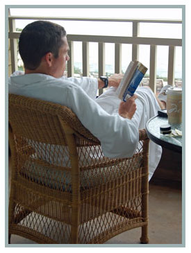 So when I saw him sitting on the balcony the next morning in a Montage robe and slippers relaxing and reading and getting a taste of what a little pampering is like, it made me so happy.