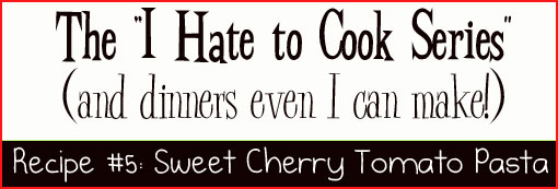 I found Jessica Seinfeld’s Sweet Cherry Tomato Pasta on her Do it Delicious site. LOVE that site.