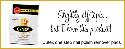 Do you have one of those beauty products that is one of your staple purchases at the drugstore? Cutex One Step Nail Polish Remover Pads is one of my absolute favorite products. With one pad that comes in a little self-contained packet (great for traveling), you can remove all the polish on all 10 nails, EVEN the toughest to remove red polish! It takes the mess out of continually dipping back into the bottle of remover and using a gazillion cotton balls. It just is one of those simple, silly things that makes life easier.