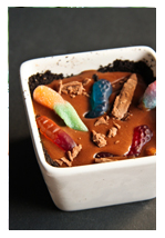 Playing off the nature theme, have the kids make their own earthy “mudpies” using homemade organic chocolate pudding and toppings with such as whipped cream, chocolate sprinkles, pretzels, gummy worms, smashed up organic chocolate cookies, etc.