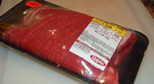 For those of you that don’t cook like me and get confused in the meat section, this is the type of meat we bought. It said very clearly on the label, “Beef Flank Steak.”