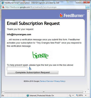 This is to prevent spam, so what you will do is enter in the letters you see in green, then click “complete subscription request.”
